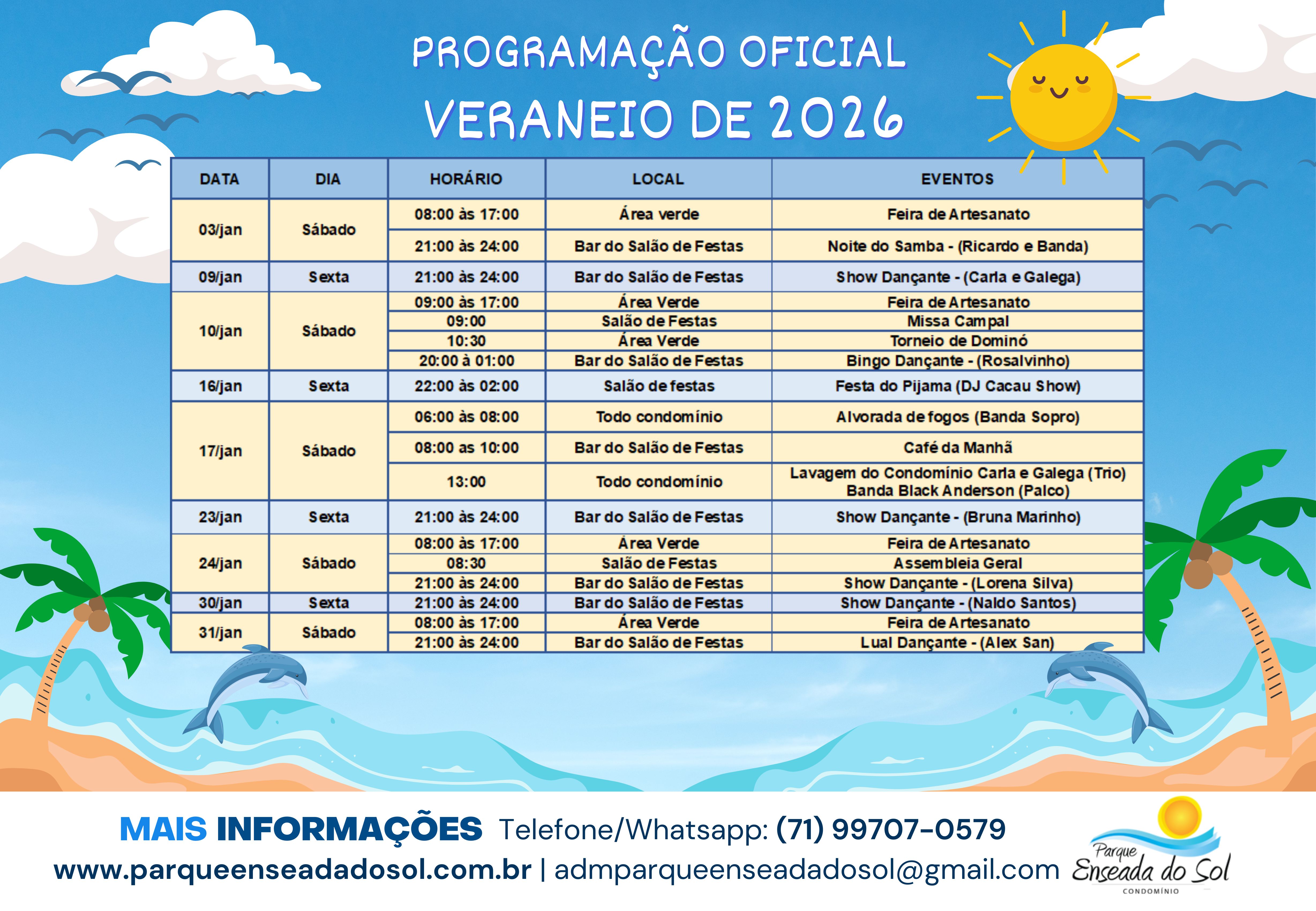 Confira a programação completa e participe! Vamos aproveitar juntos o melhor Veraneio de 2026. 🌊🎉